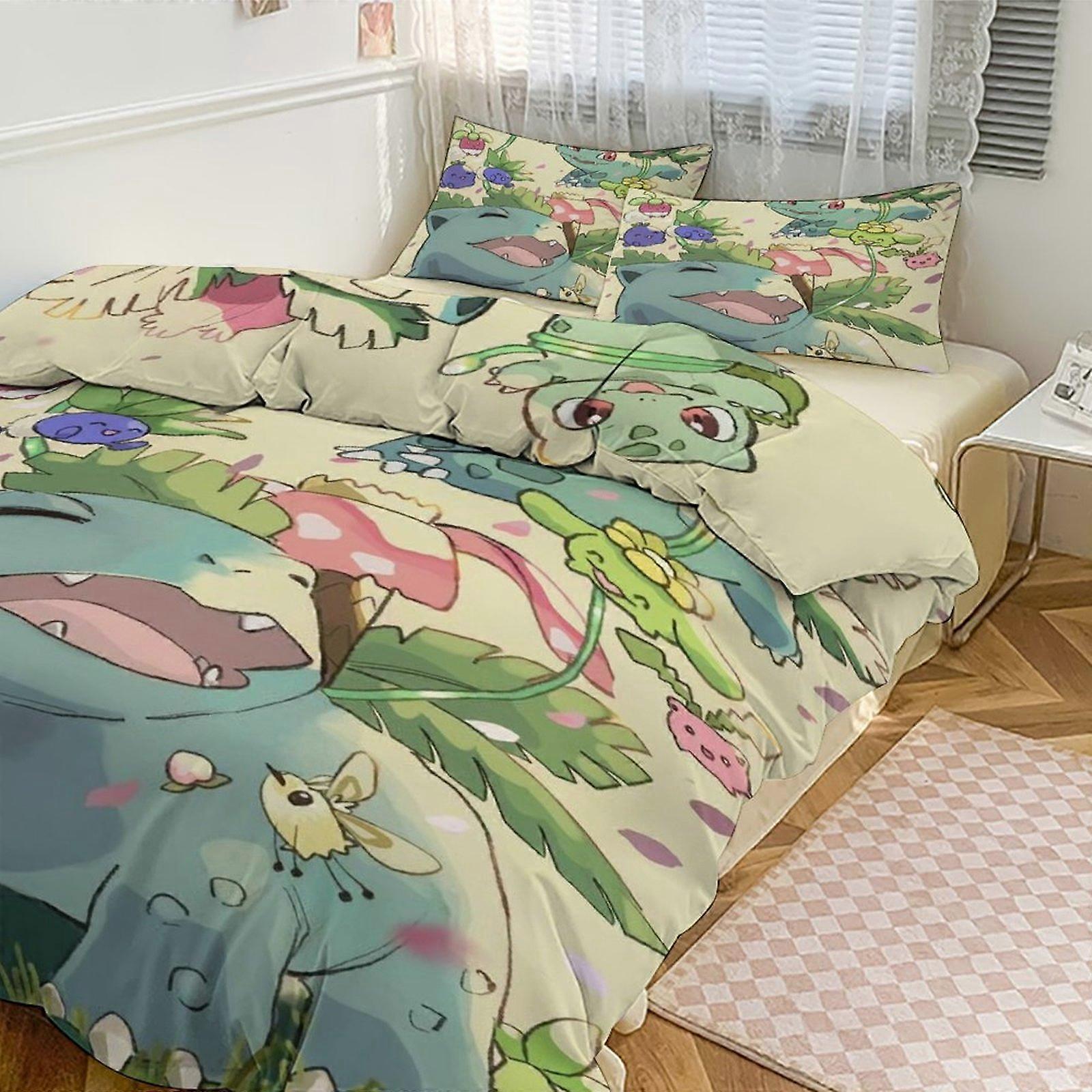 Bed Sheets g306 Bulb_asaur Print Bedding Set Pattern Duvet Cove Set 3 Pieces 1 Quilt Cover And 2 Pillowcases for Women Men Teens tq306