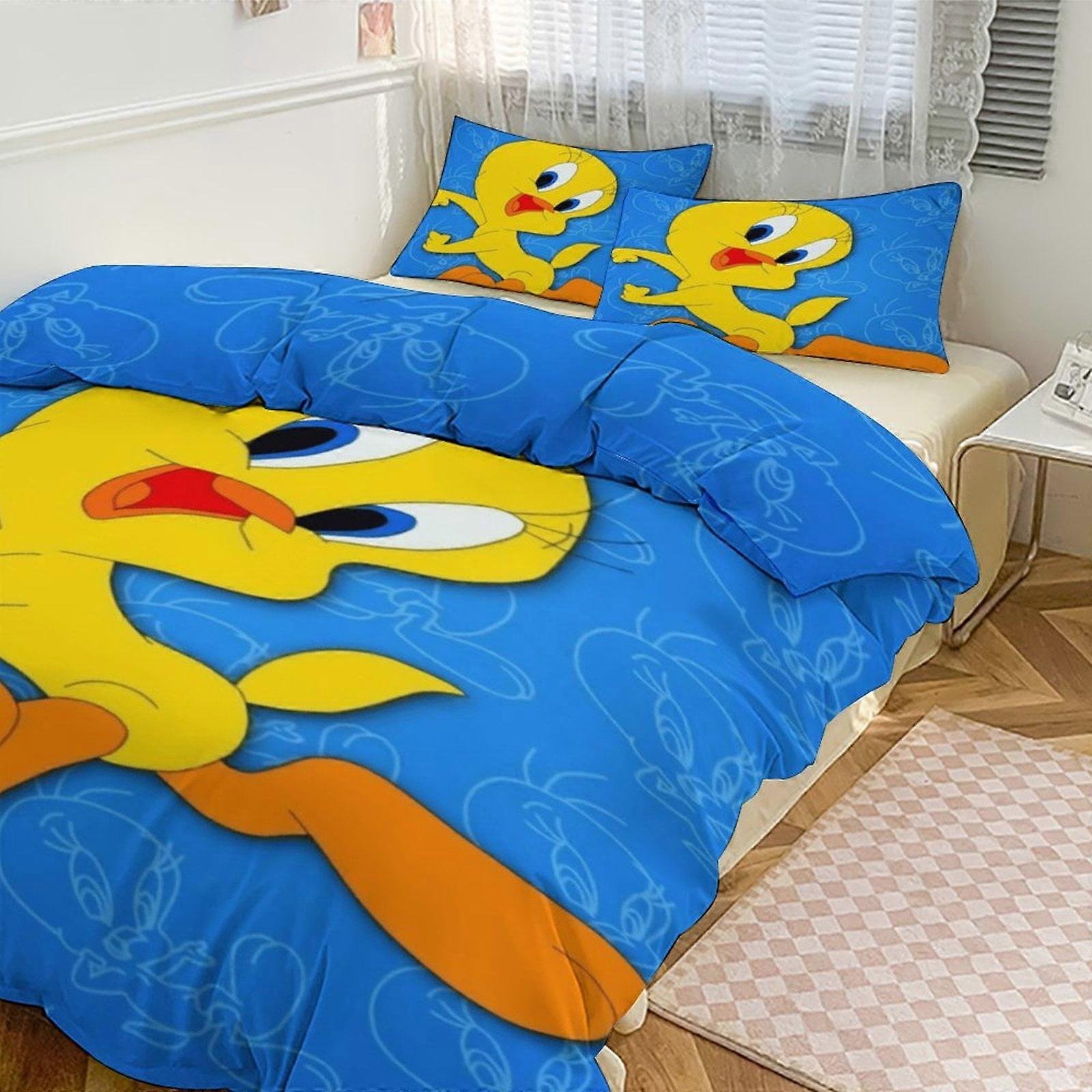 g864 TweetyBird Print Bedding Set Pattern Duvet Cove Set 3 Pieces 1 Quilt Cover And 2 Pillowcases for Women Men Teens 86x70"" tq864