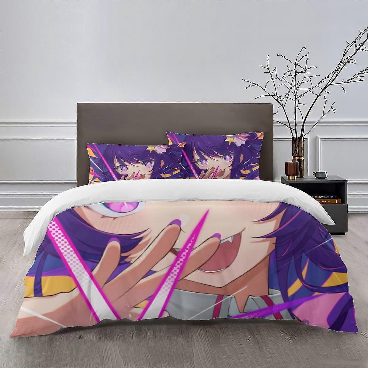g1196 OSHI NO KO Bedding Sets Bed Cartoon Duvet Cover Lightweight 3 Piece Bet Sets for Kids Boys Girls (1 Duvet Cover and 2 Pillowcases) tq1196