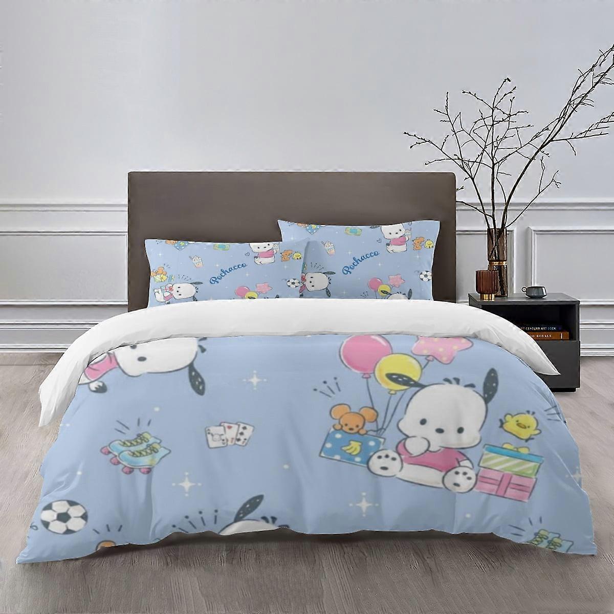 g1159 Pochacco Bedding Sets Bed Cartoon Duvet Cover Lightweight 3 Piece Bet Sets for Kids Boys Girls (1 Duvet Cover and 2 Pillowcases) tq1159
