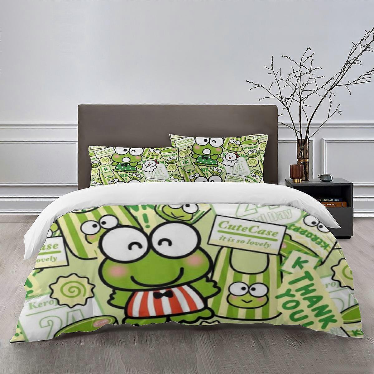 g1188 KEROKERO KEROPPI Bedding Sets Bed Cartoon Duvet Cover Lightweight 3 Piece Bet Sets for Kids Boys Girls (1 Duvet Cover and 2 Pillowcases) tq1188