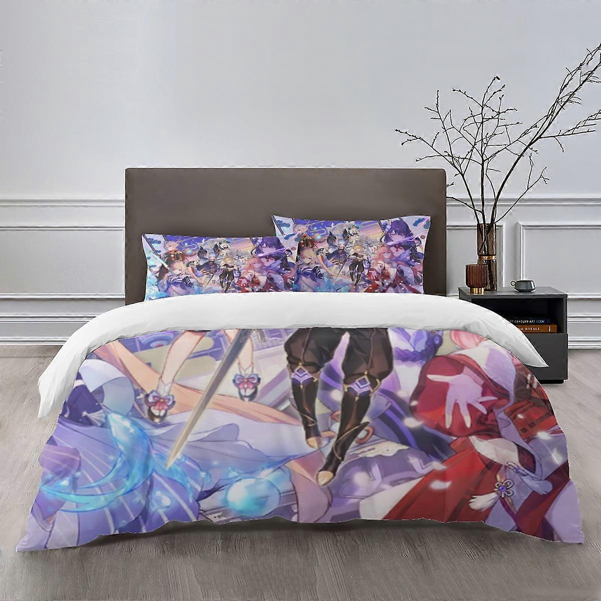 g1217 Genshin Impact Bedding Sets Bed Cartoon Duvet Cover Lightweight 3 Piece Bet Sets for Kids Boys Girls (1 Duvet Cover and 2 Pillowcases) tq1217