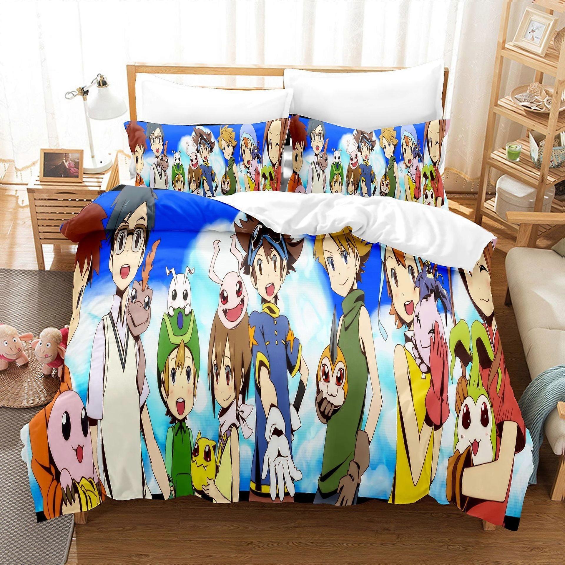 g1683 Digimon theme Cartoon Anime Bedding Set Anime 3-Piece Bedding Set 3D Digital Printing Duvet Cover Set Twin/Full/Queen/King size--3||228*228 tq16
