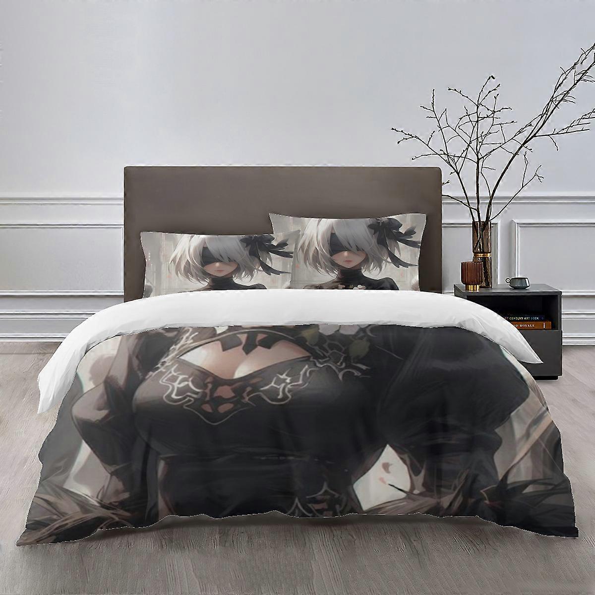g1505 NieR Bedding Sets Bed Cartoon Duvet Cover Lightweight 3 Piece Bet Sets for Kids Boys Girls (1 Duvet Cover and 2 Pillowcases) tq1505