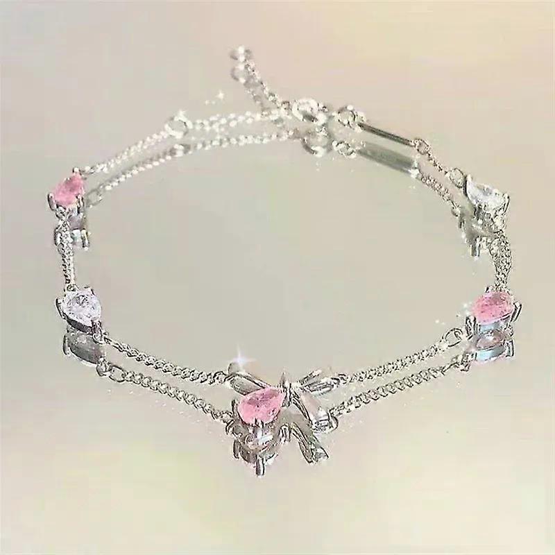 fashion Pink Crystal Cherry Blossom Bracelets For Women Girls Sweet Moon Bow Flowers Zircon Bracelet Party Aesthetic Jewelry