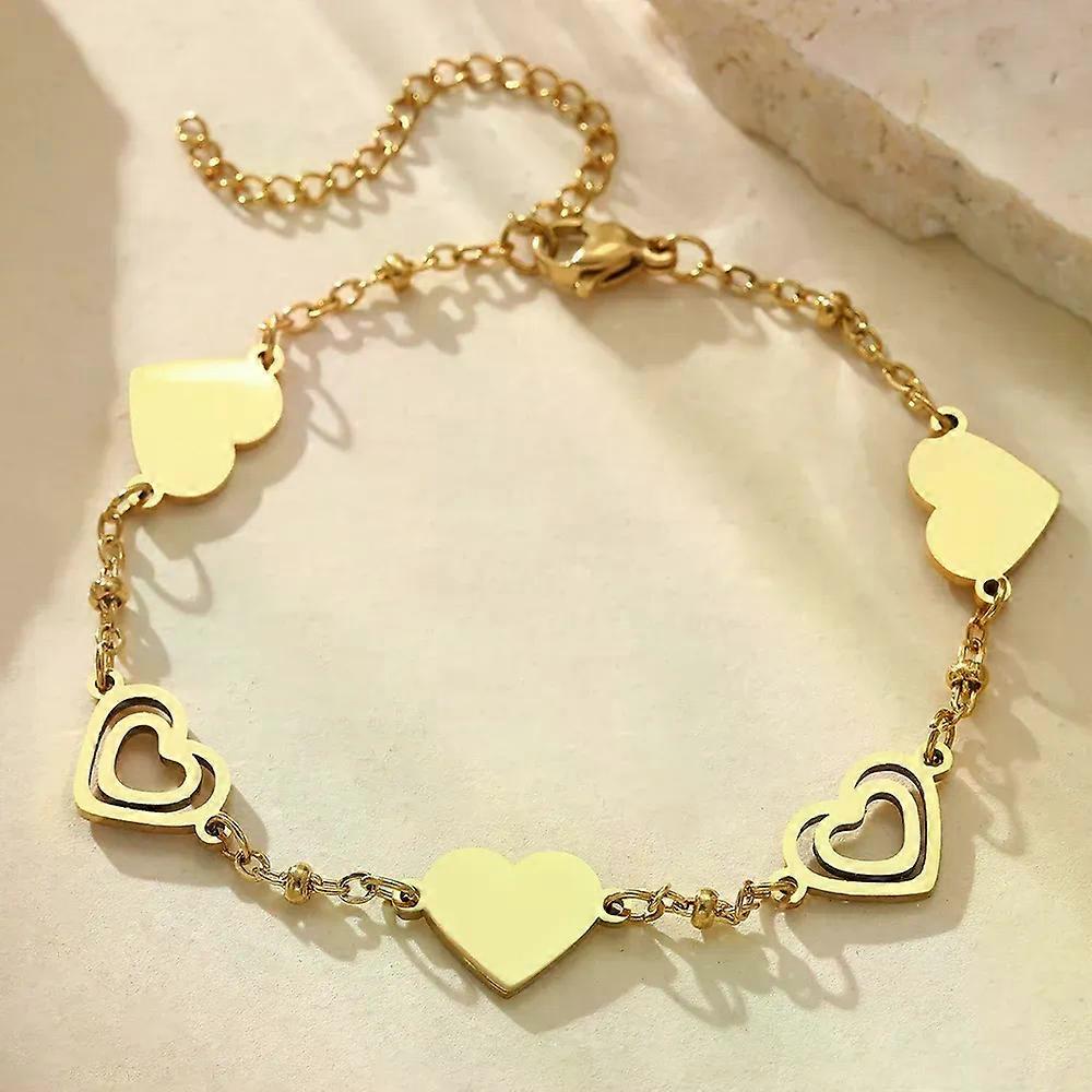 Stainless Steel Bracelets Fresh Double Heart Design Openwork Carving Noble Bracelets For Women Jewelry Luxuries Banquet Gifts