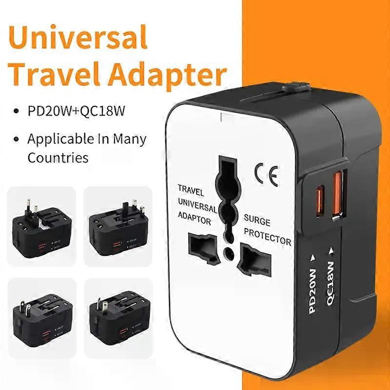 PD20W Global Universal Travel Adapter with QC18W Dual Ports Type-C Compatible with Europe USA Japan Australia UK Portable