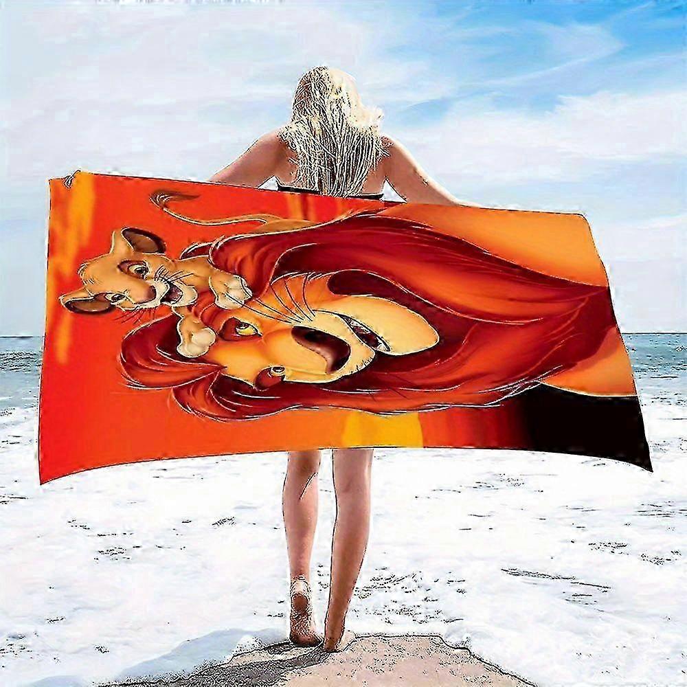 1pc The Lion King Extra-Large Microfiber Beach Towel - Quick-Dry, Ultra-Absorbent, Windproof & Sun-Protective - Vibrant Cartoon Lion Design, Warm