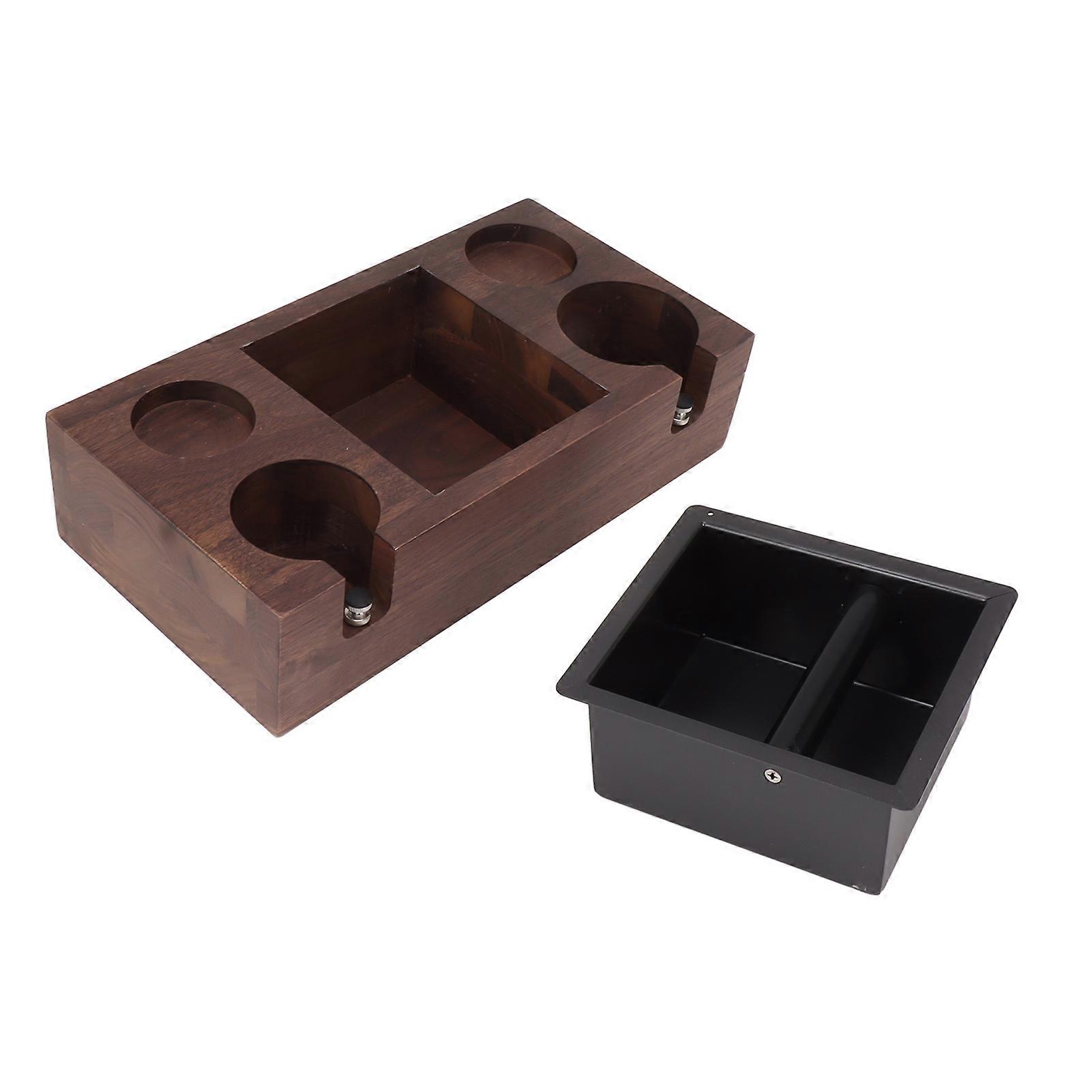 Wooden Coffee Tamping Station with Metal Knock Box 32x16.5cm