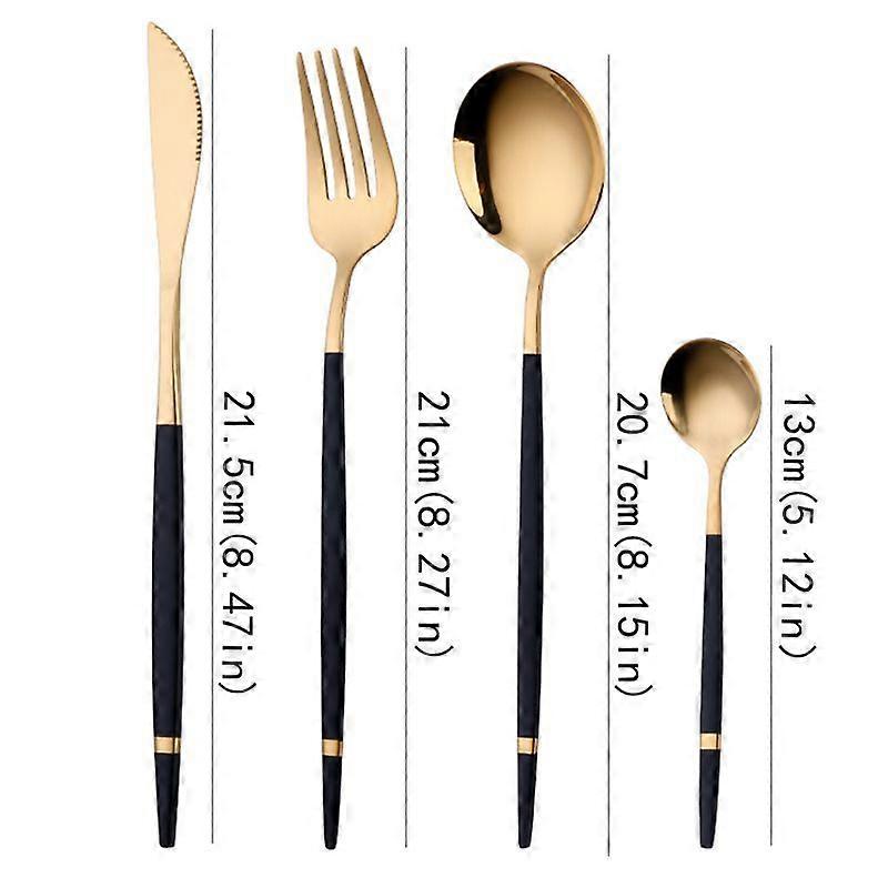 Luxora 1set Durable Stainless Steel Flatware Set - Black Golden Silverware for Home Kitchen Christmas and Restaurant Use