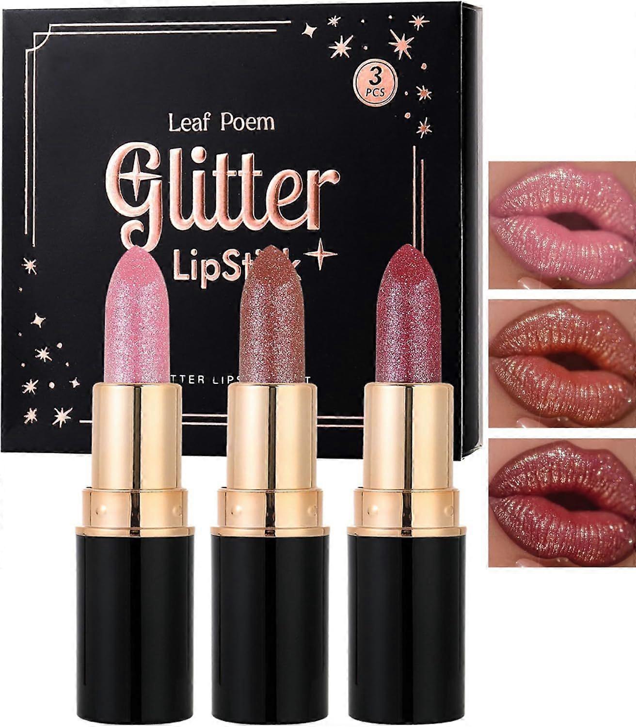 3PCS Metallic Glitter Lipstick Matte Long Lasting Nude Pink Lip Gloss for Women,Shimmer Diamond Sparkling Shiny Lip Stick Waterproof Lipgloss Lipstick