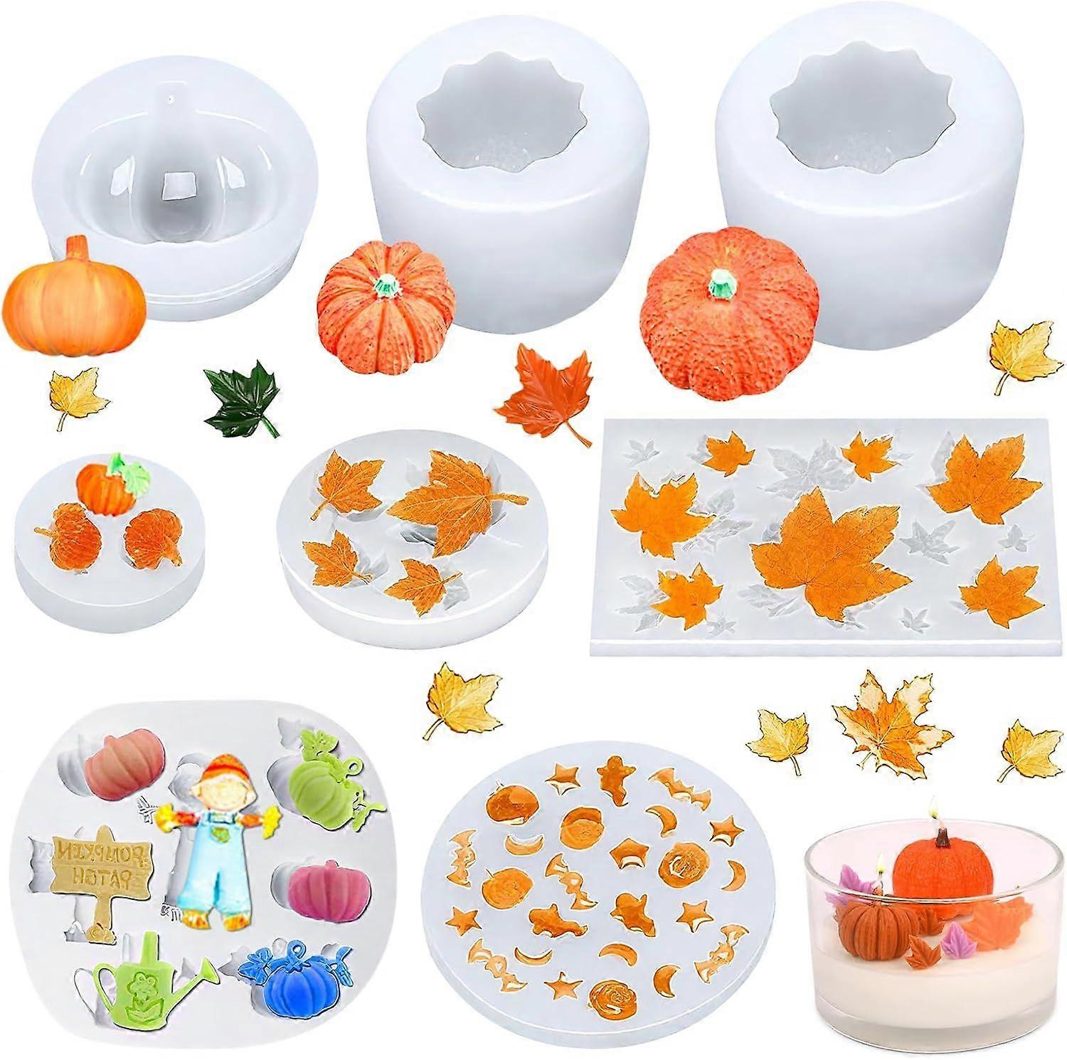 8pcs Pumpkin Candle Silicone Moulds, Halloween Maple Leaf Candle Mould, 3D Silicone Epoxy Mold for Halloween Decorations, Candles, Aromatherapy