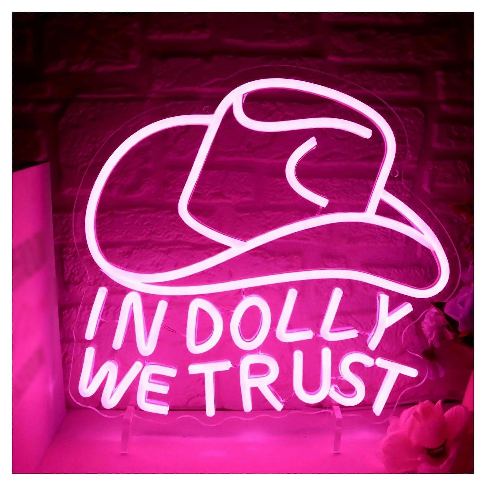 Sign Lamp In Dolly We Trust LED Neon Sign Cowgirl Hat Wall Art 33x40 Cm Country Retro Style Man Cave Party Birthday