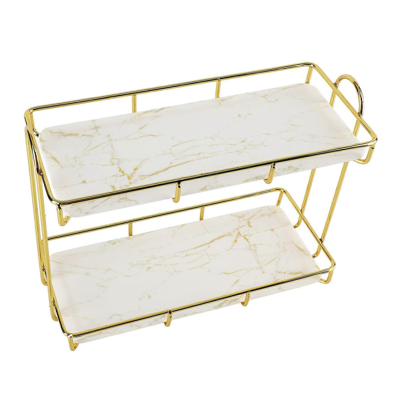 2 Tier Gold White Bathroom Storage Rack Anti Slip Makeup Shelf