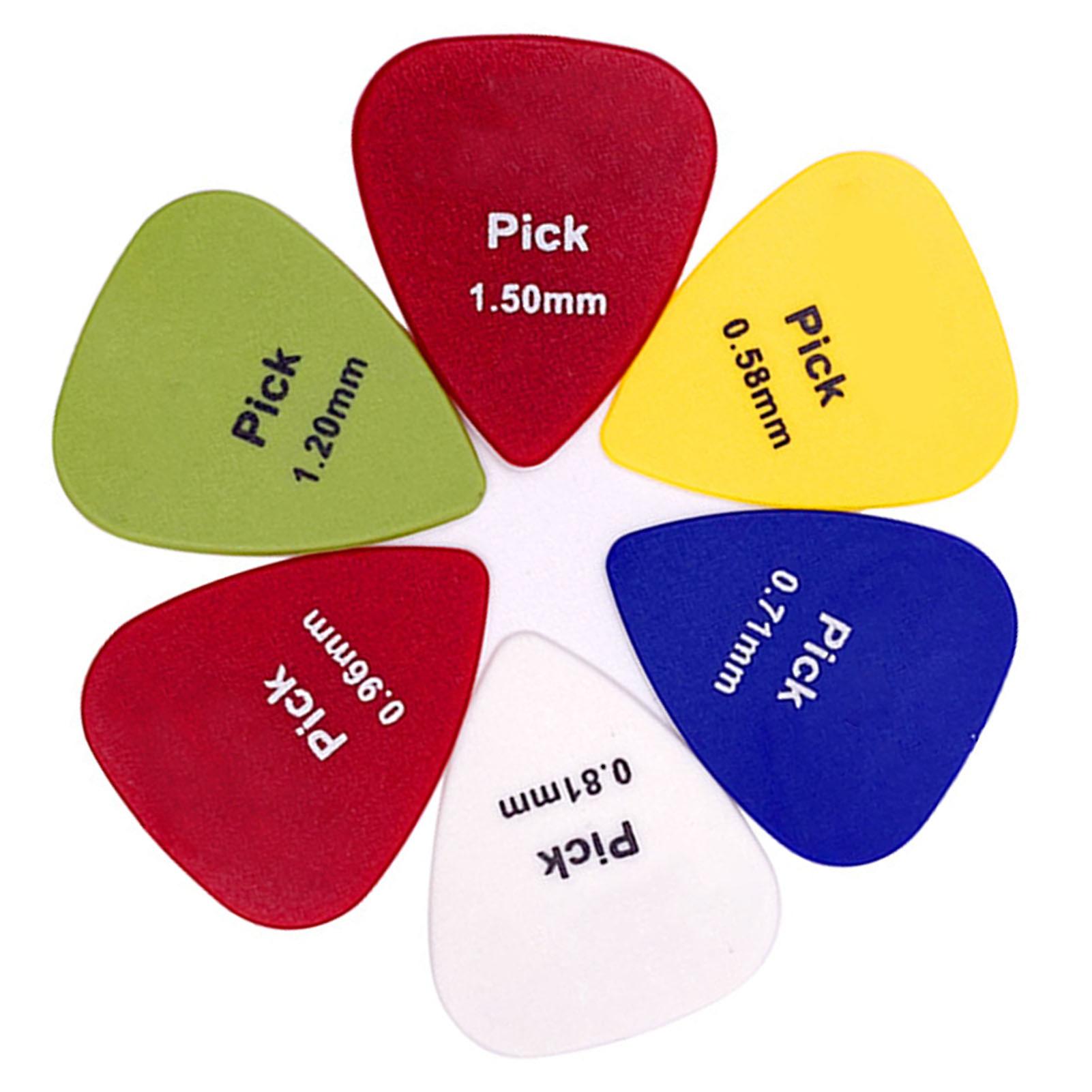 100Pcs Bright Color Frosted ABS Guitar Picks 0.58-1.5mm Set