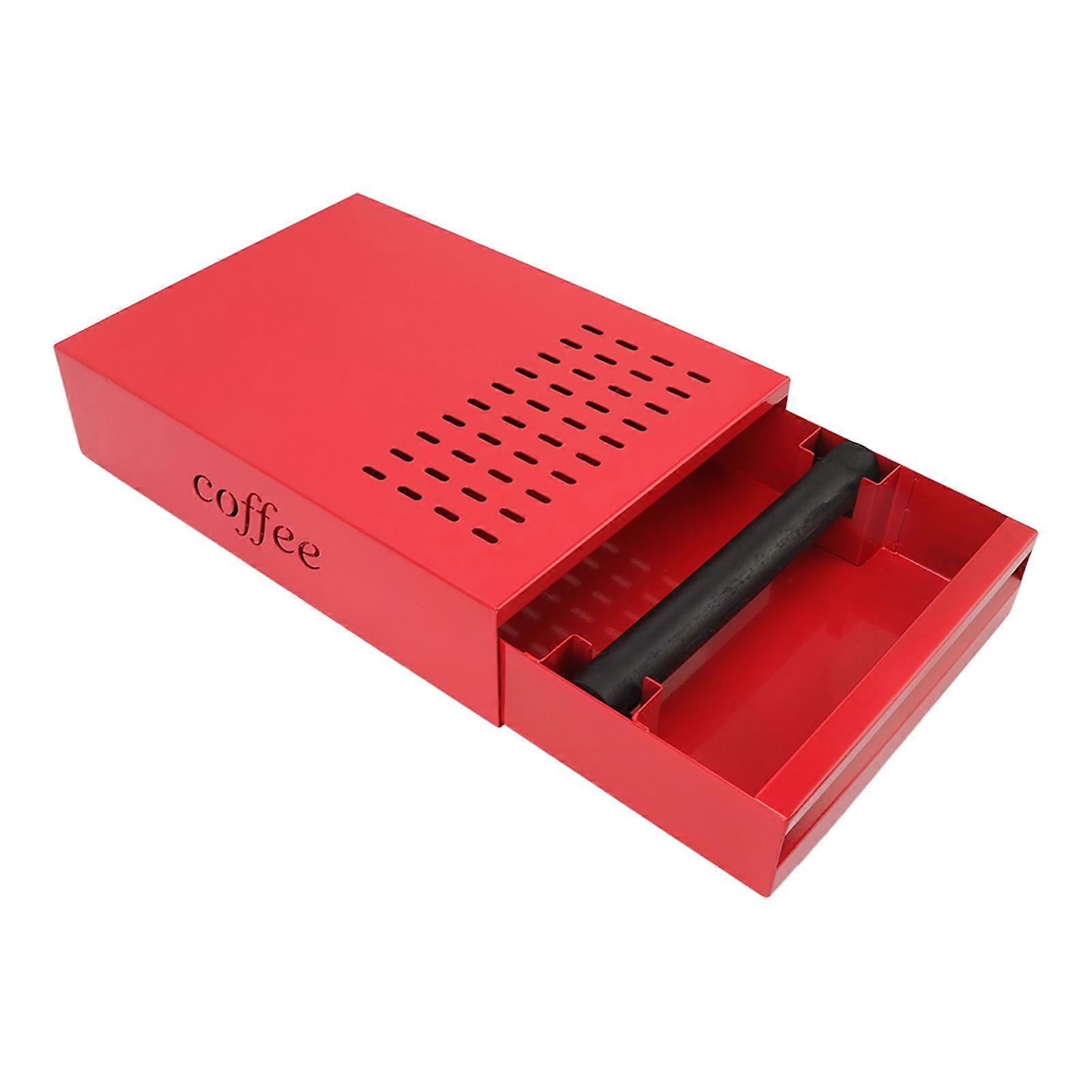 Coffee Knock Box Drawer Stainless Steel 35x25.5x9cm Red