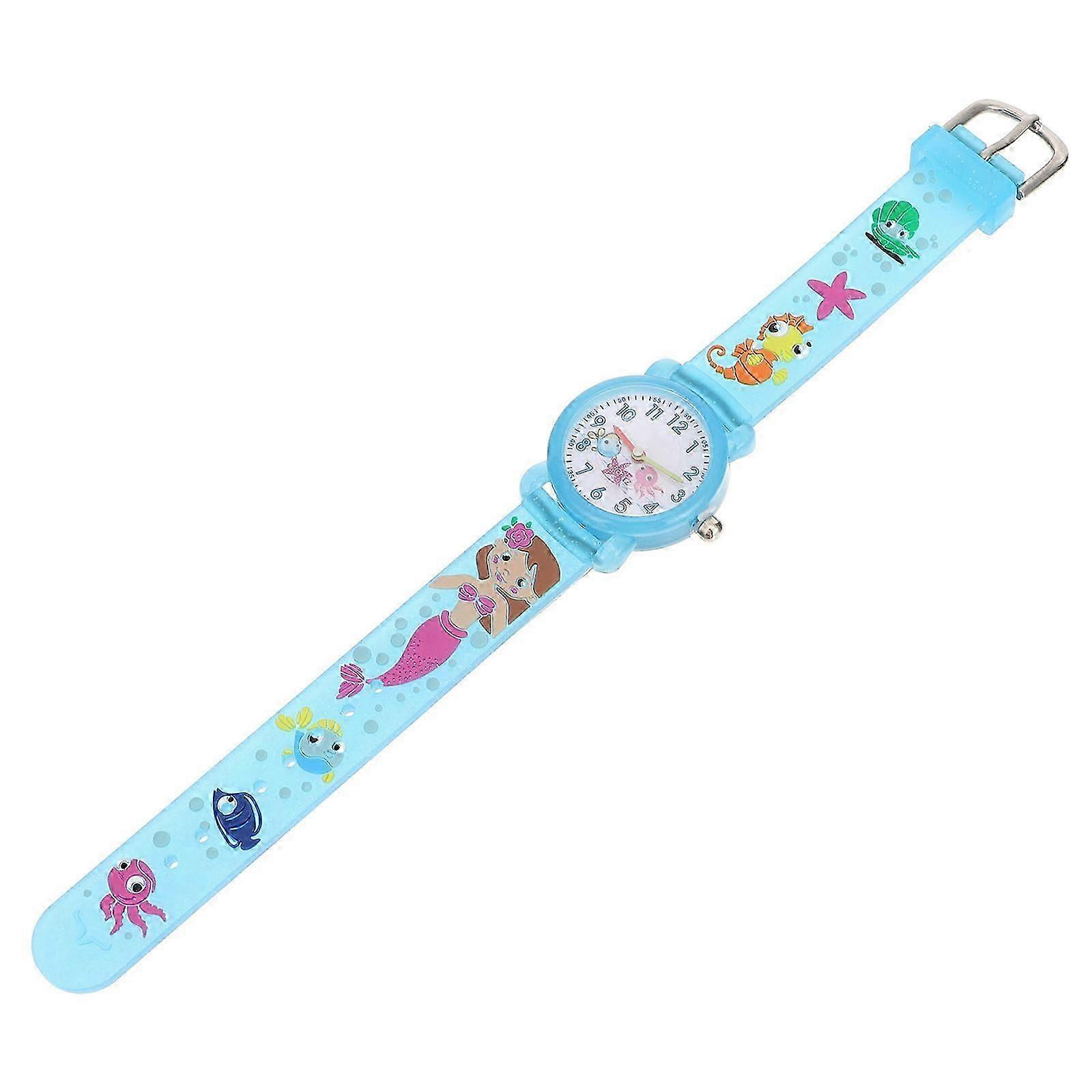 Cartoon Mermaid Kids Waterproof Watch for Girls, Round Style Comfortable Wristband for Outdoor Activities, 1-Pack