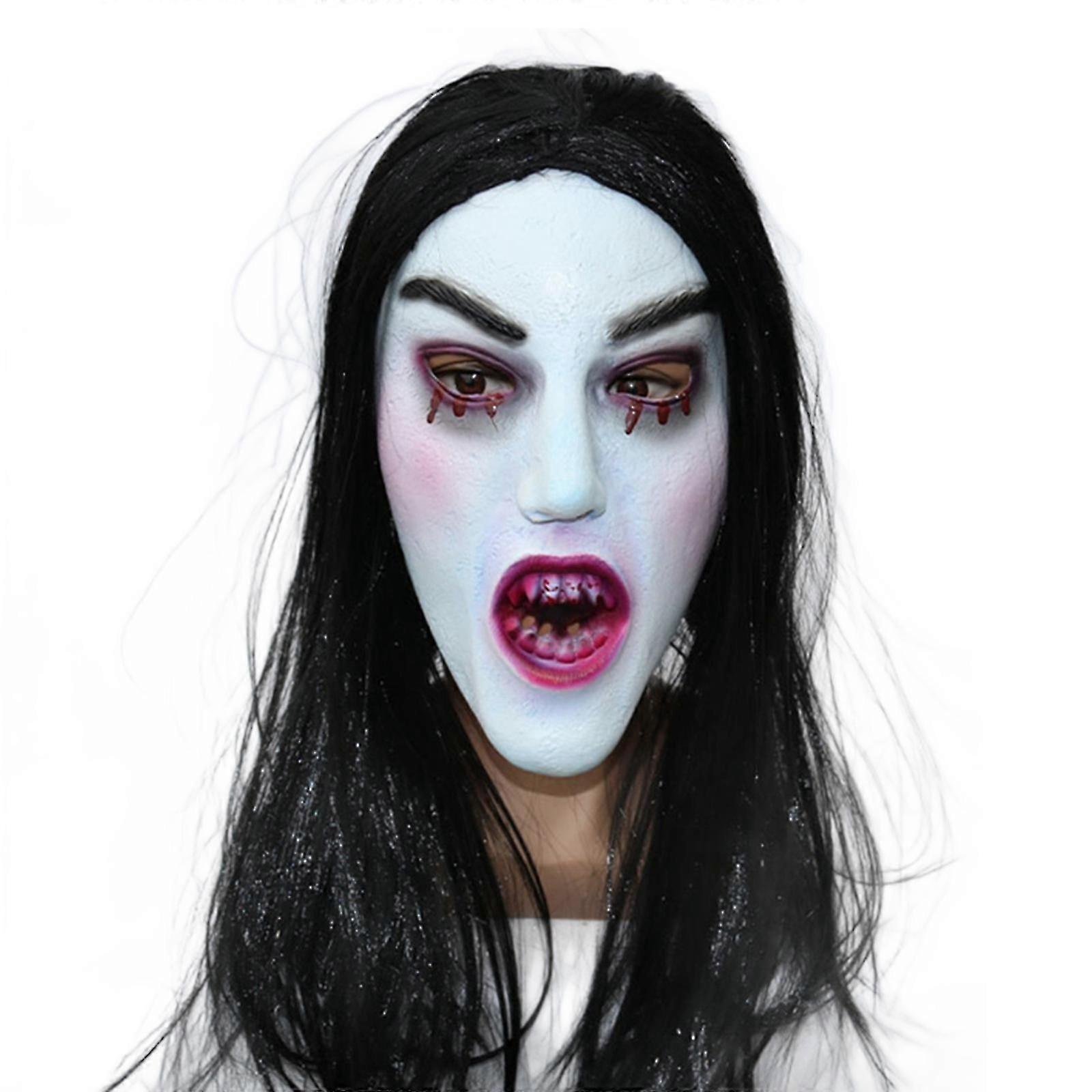 Horror Devil Mask with Long Hair Creepier Scary Mask Halloween Costumes Halloween Costumes for Christmas Costume Party white hair beauty