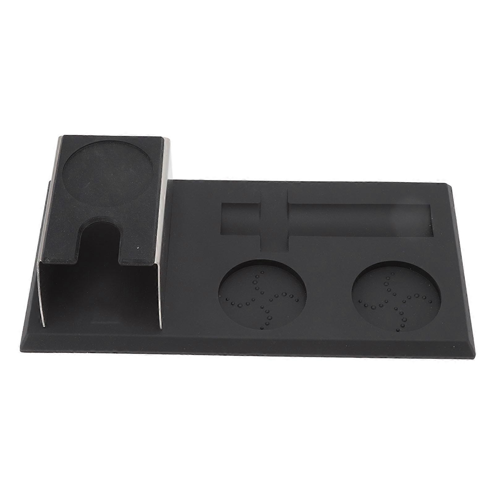 Black Coffee Tamper Mat Holder Set, Non-Slip Silicone Pad 900g