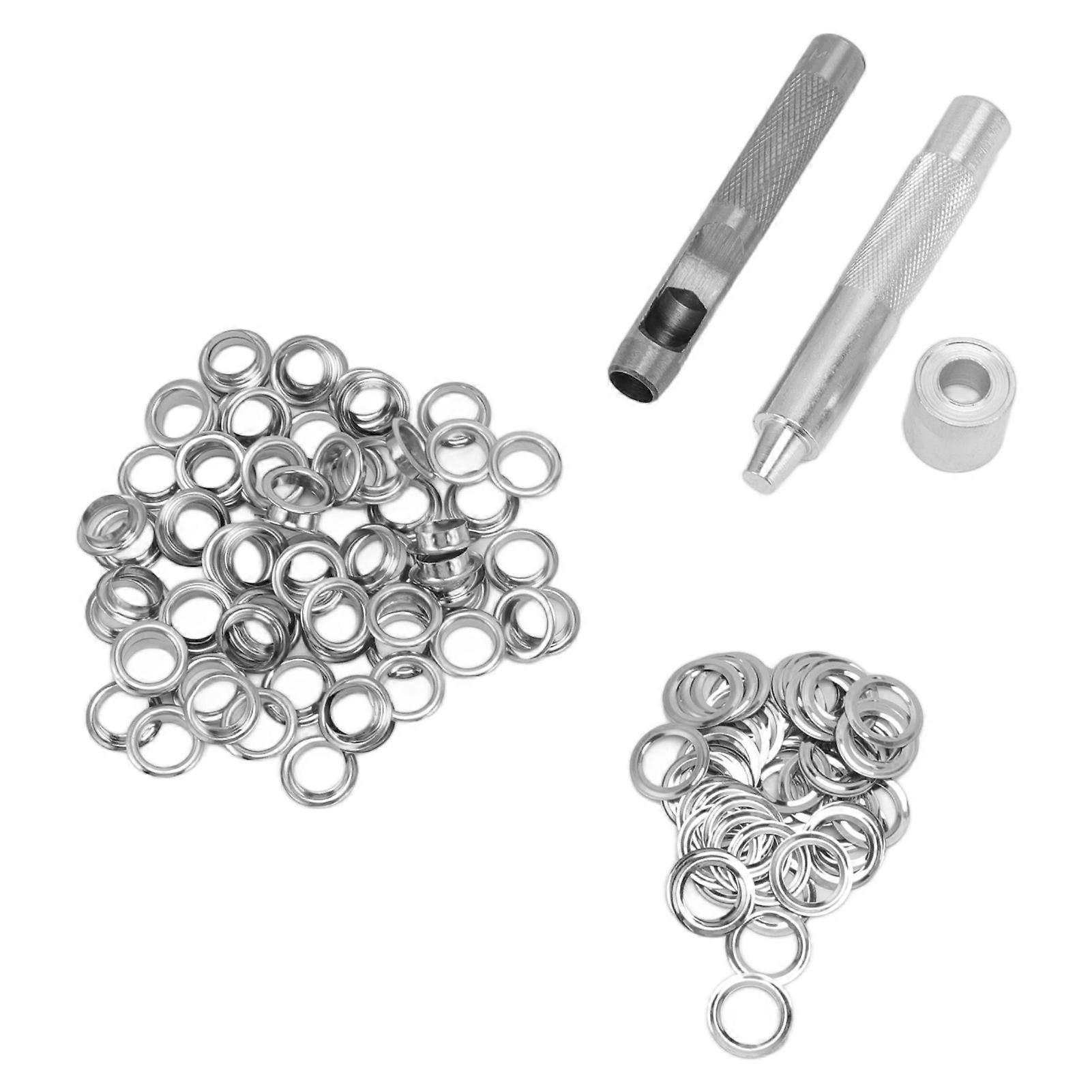 Grommet Tool Kit 100 Set Silver Steel Eyelets 1cm Hole Cutter