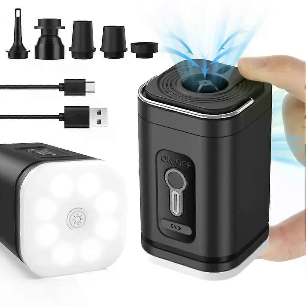 Mini Cordless Air Pump With 5 Nozzles Camping Light 2400mAh USB Rechargeable Inflatable Swimming Ring Float Air Mattress Bed