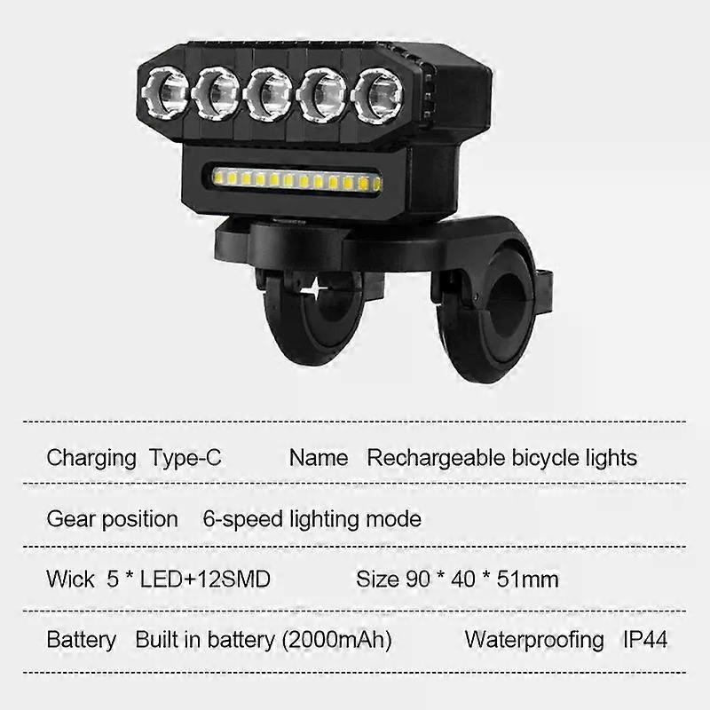 New USB Charging MTB Bicycle Light Horn Highlight Bike Light Waterproof Cycling Lamp Flashlight Cycling Equipment Accessories