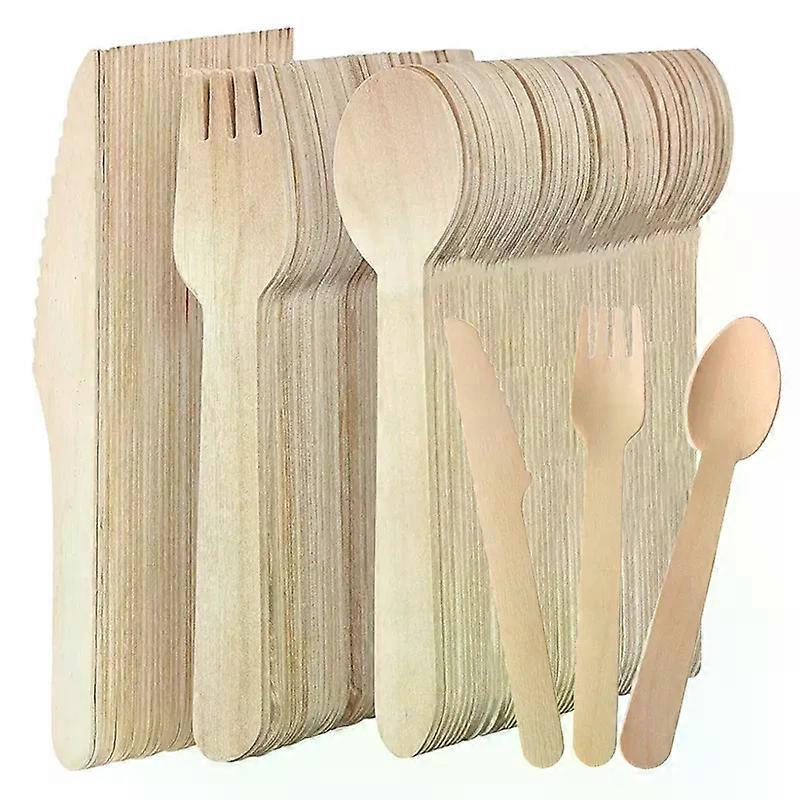 50PCS Disposable Wooden Forks Spoons Knives Wooden Tableware Suitable for Parties Camping Banquets Weddings Picnics