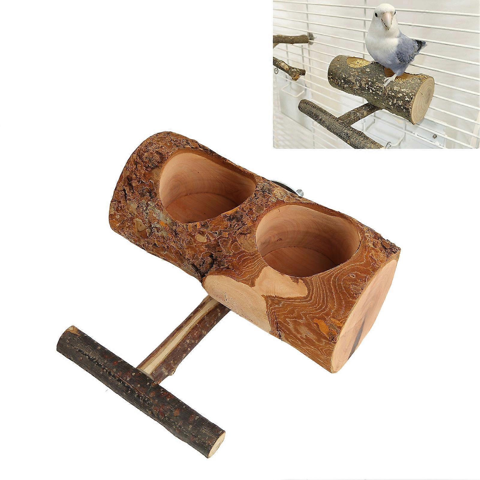 Wooden Parrot Feeder Cups Double Bowl 6.5x13x14.5cm Apple Wood