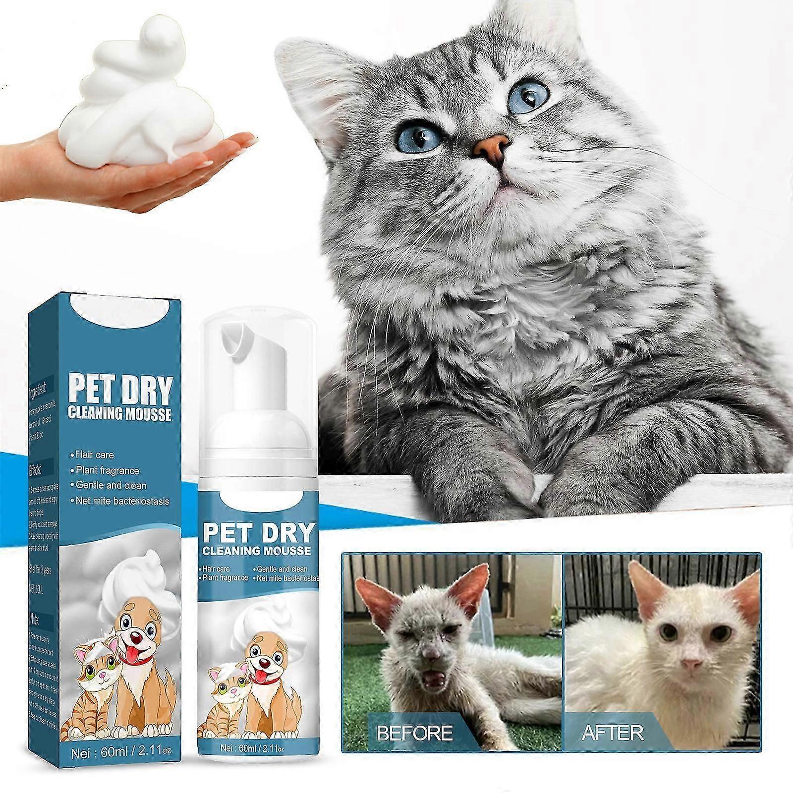 No Rinse Dry Shampoo Mousse for Cats and Dogs - Freshens and Removes Odors Quickly