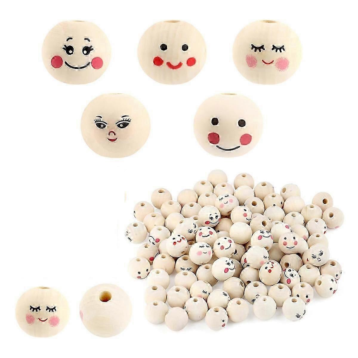 Pack of 100 20mm Wooden Beads with Faces, Ideal for Threading and Worry Bead Crafts
