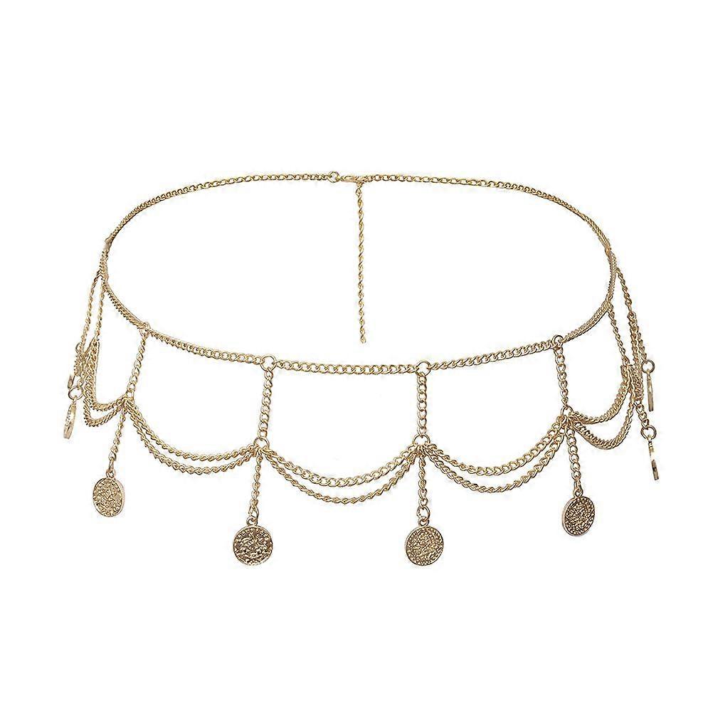 Women Aluminum Yoga Waist Chain Multilayer Metal Body Chain Retro Decoration for Dress Trousers - Style 9(Golden)