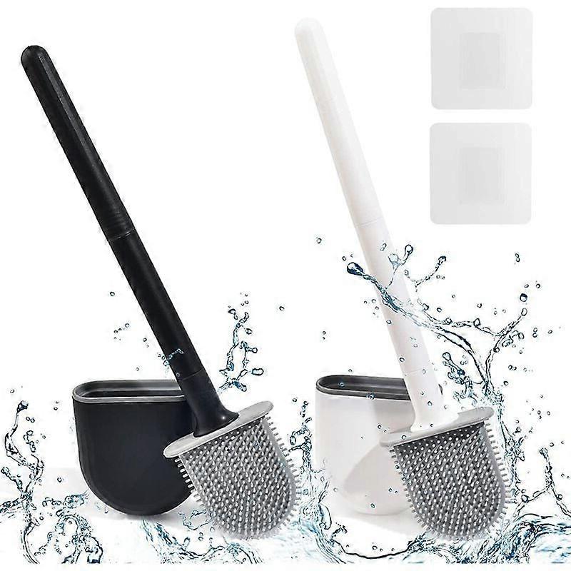 2pcs Flat Wall Mounted Silicone Toilet Brush, Toilet Brush and Holder, Black + White Silicone Toilet Brush