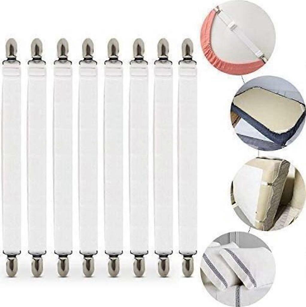 Adjustable Bed Sheet Grippers, 8 Elastic Bed Sheet Tighteners, White Bed Sheet Grippers, Metal Sheet Clips, Suitable for Sheets, Mattresses, Ironing