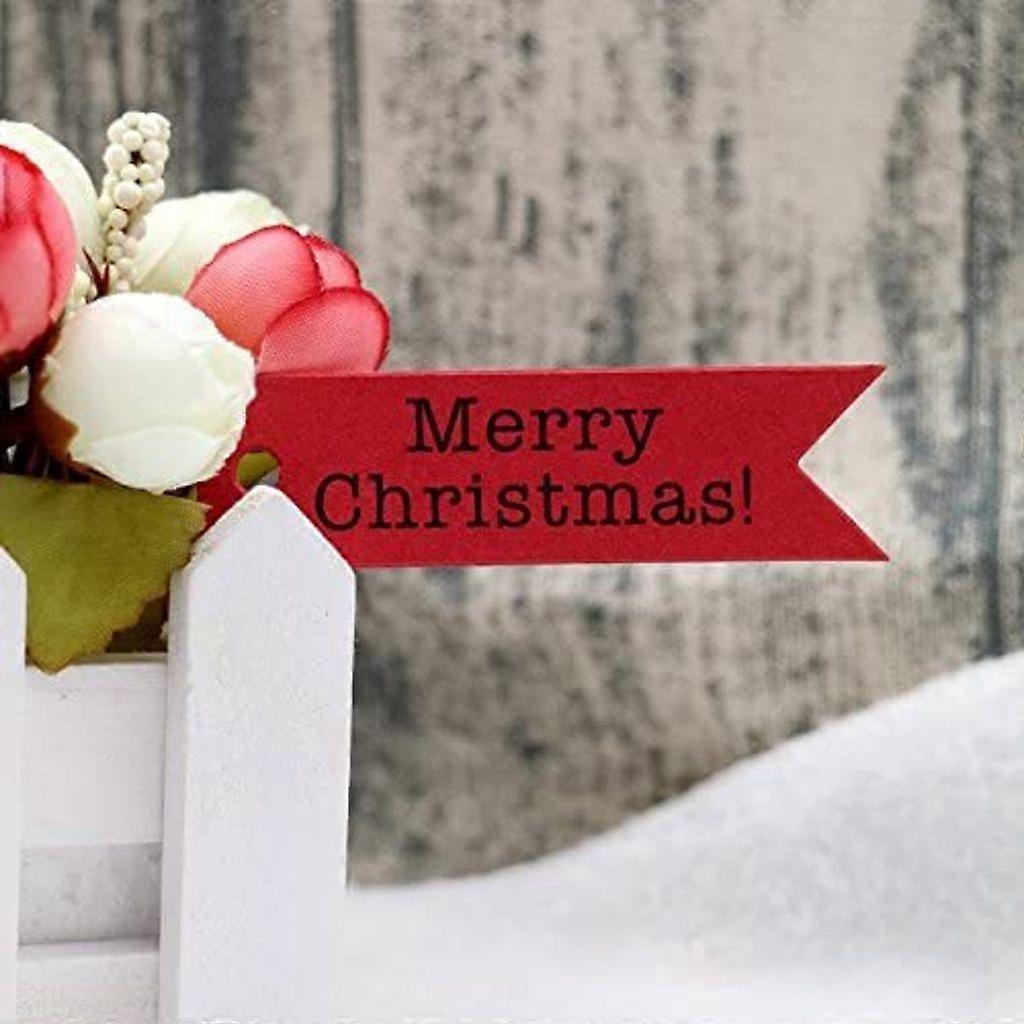 Christmas Gift Tag, A Pack of 100 Cow Christmas Tags, 7cm * 2cm Brown Gift Label (Red)