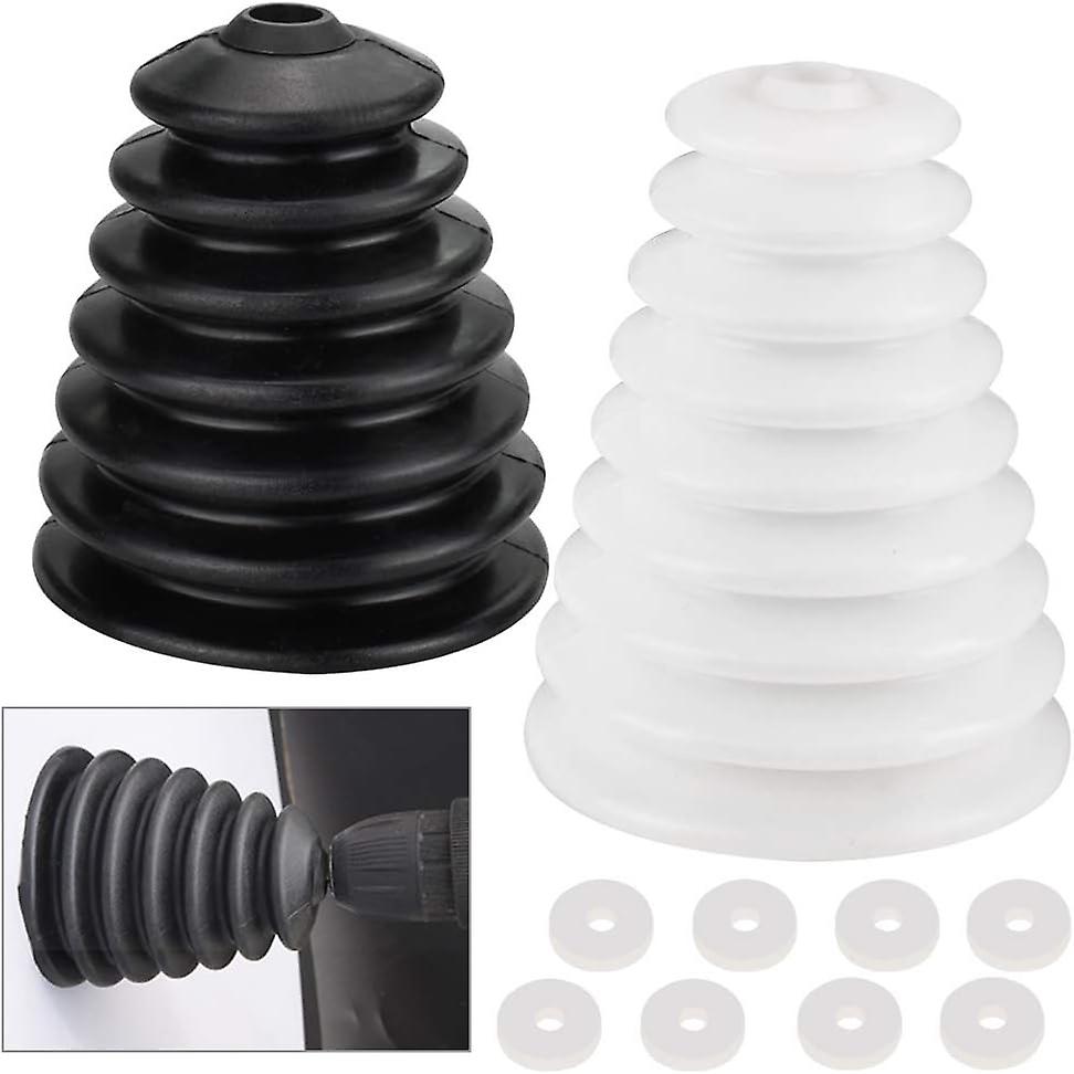 2 Black and White Elastic Dust Collector Covers for Rubber Drill Bits for Power Tools, 8 Rubber Drill Rings,