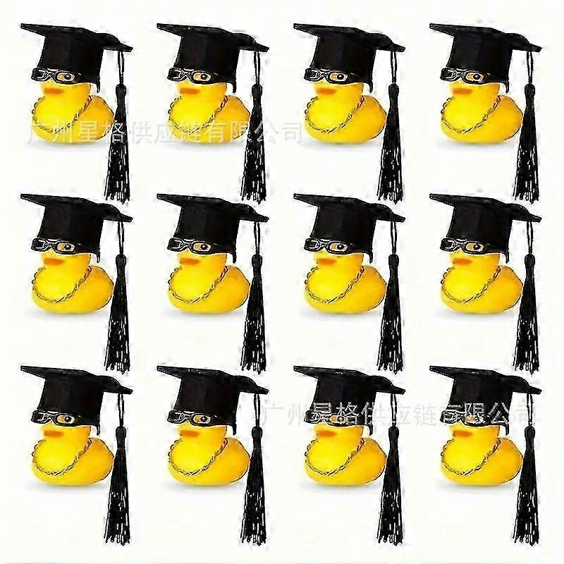 24-Pack Graduation Rubber Ducks with Black Caps for Party Favours and Gifts