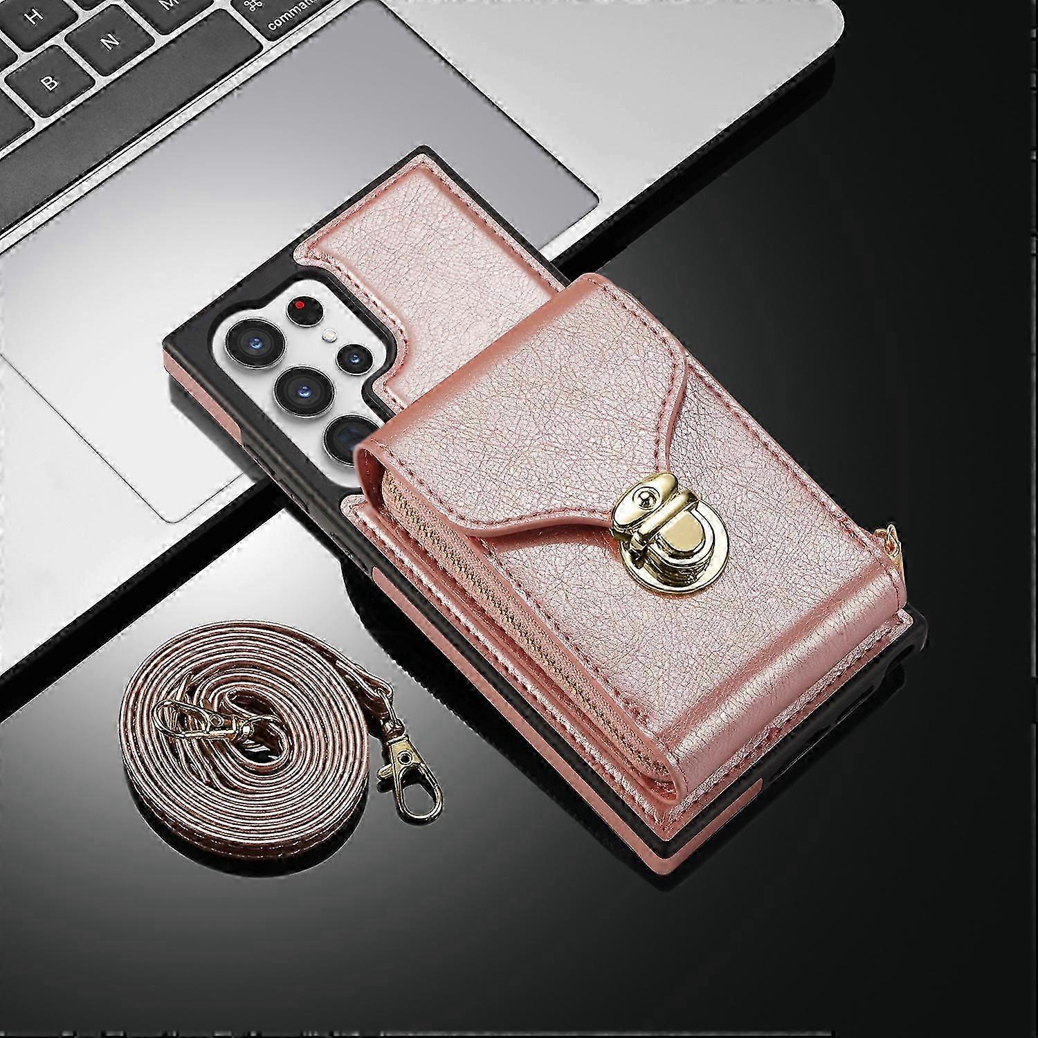 Leather Zipper Wallet Case for Samsung Galaxy S24 Ultra with Crossbody Lanyard for Women