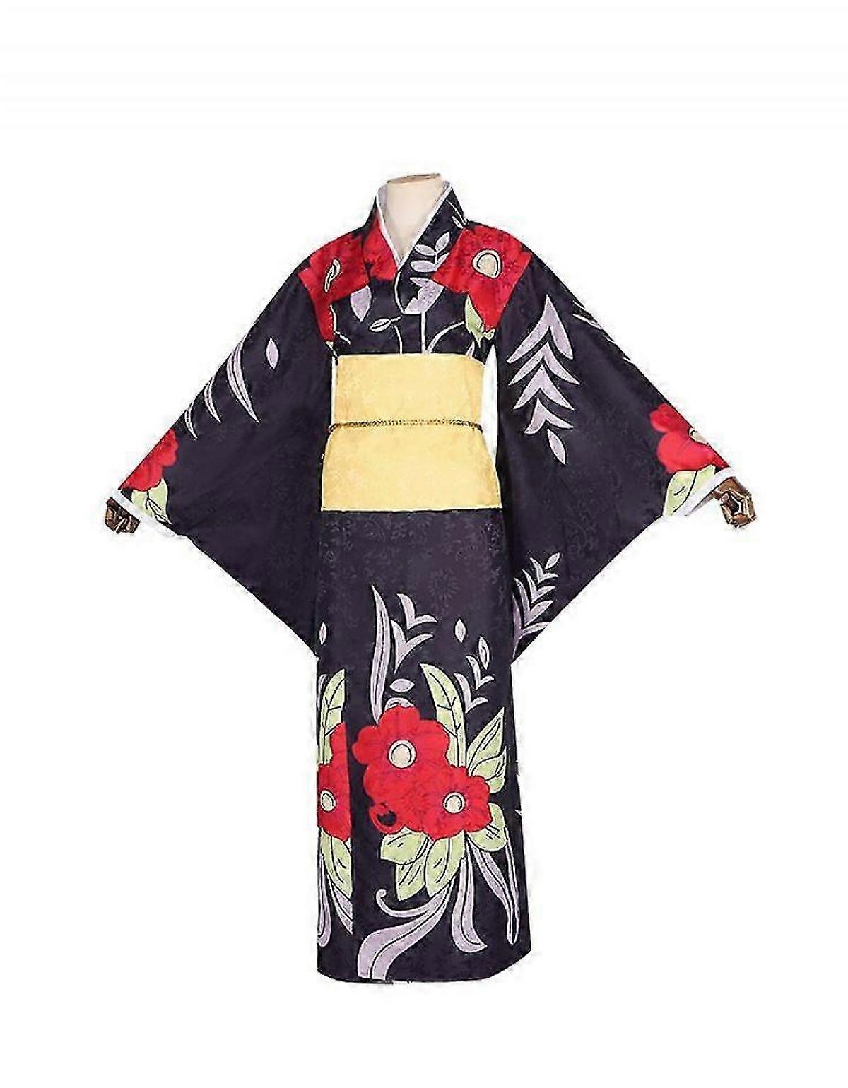 Tamayo Kimono Costume Set Costume Set Floral Pattern Robe With Obi & Cord Belt With Full Accessories For Cosplay Or Events
