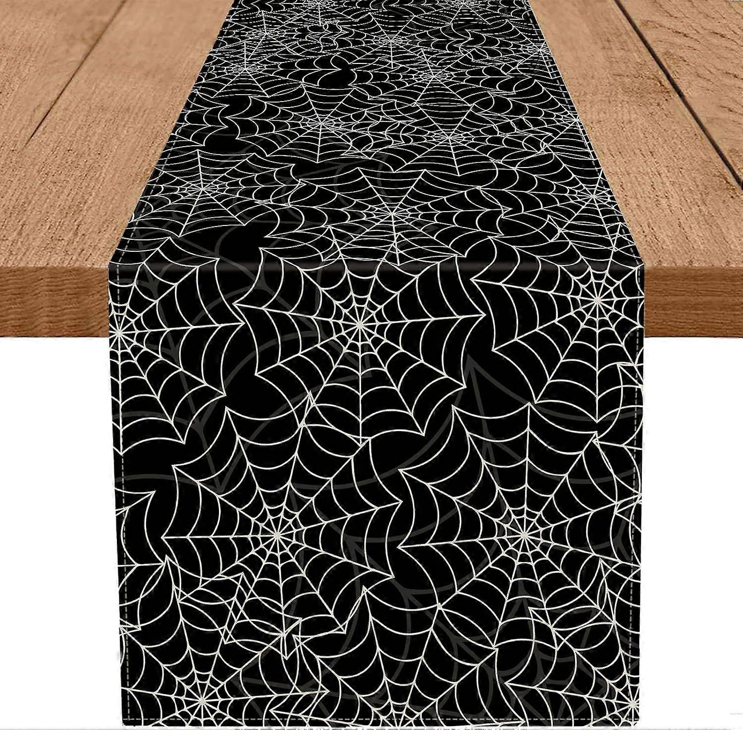 Halloween Table Runner Spider Web Black Linen Table Runners for Seasonal Holidays Indoor Outdoor Kitchen Dining Party Home Decor 13 x 71 Inch