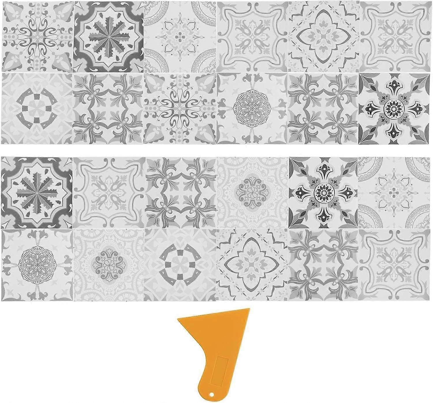 Set of 24 kitchen and bathroom tile stickers - 15 x 15 cm - Adhesive film to stick on - Kitchen tile look - Grey