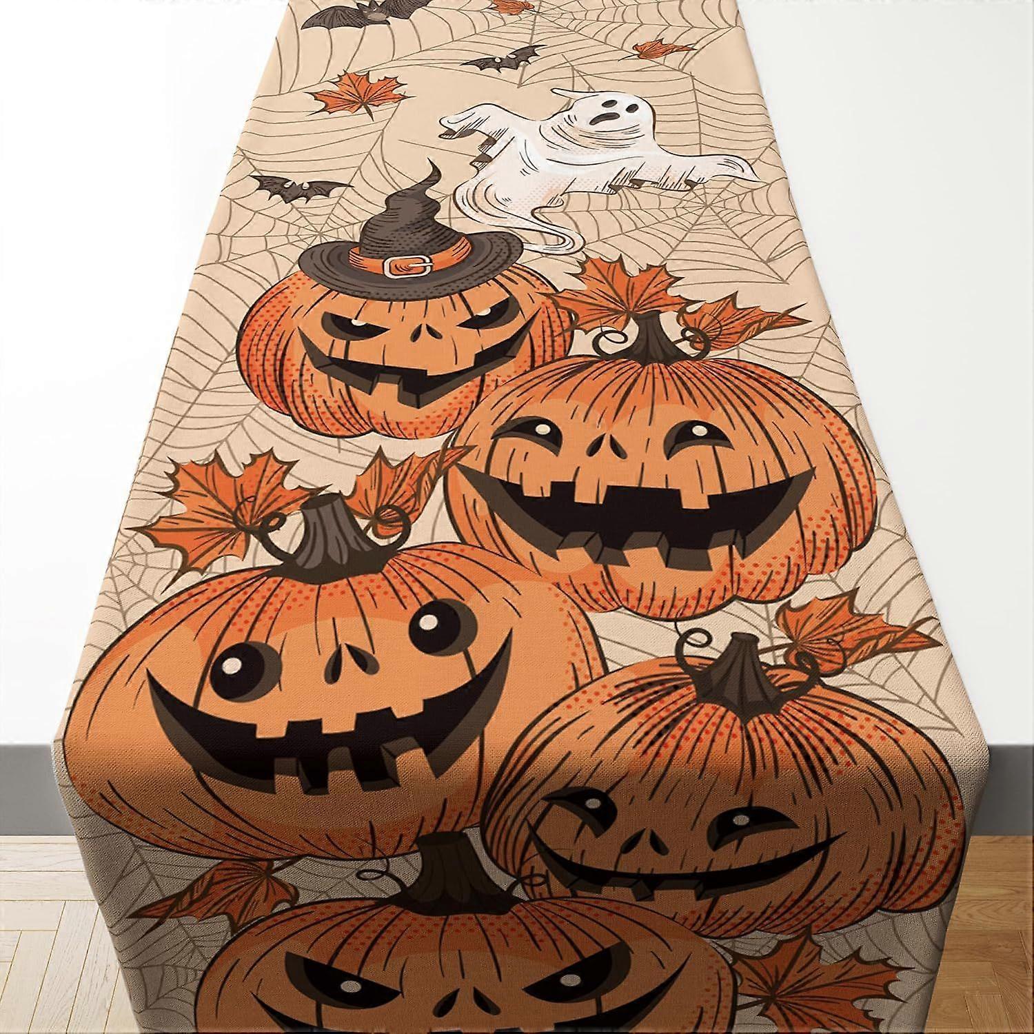 Halloween Decorations - Waterproof Table Runner for Indoor Outdoor | Halloween Pumpkins Leaves Ghost Bats Table Decor of Party Favors Supplies Backdro