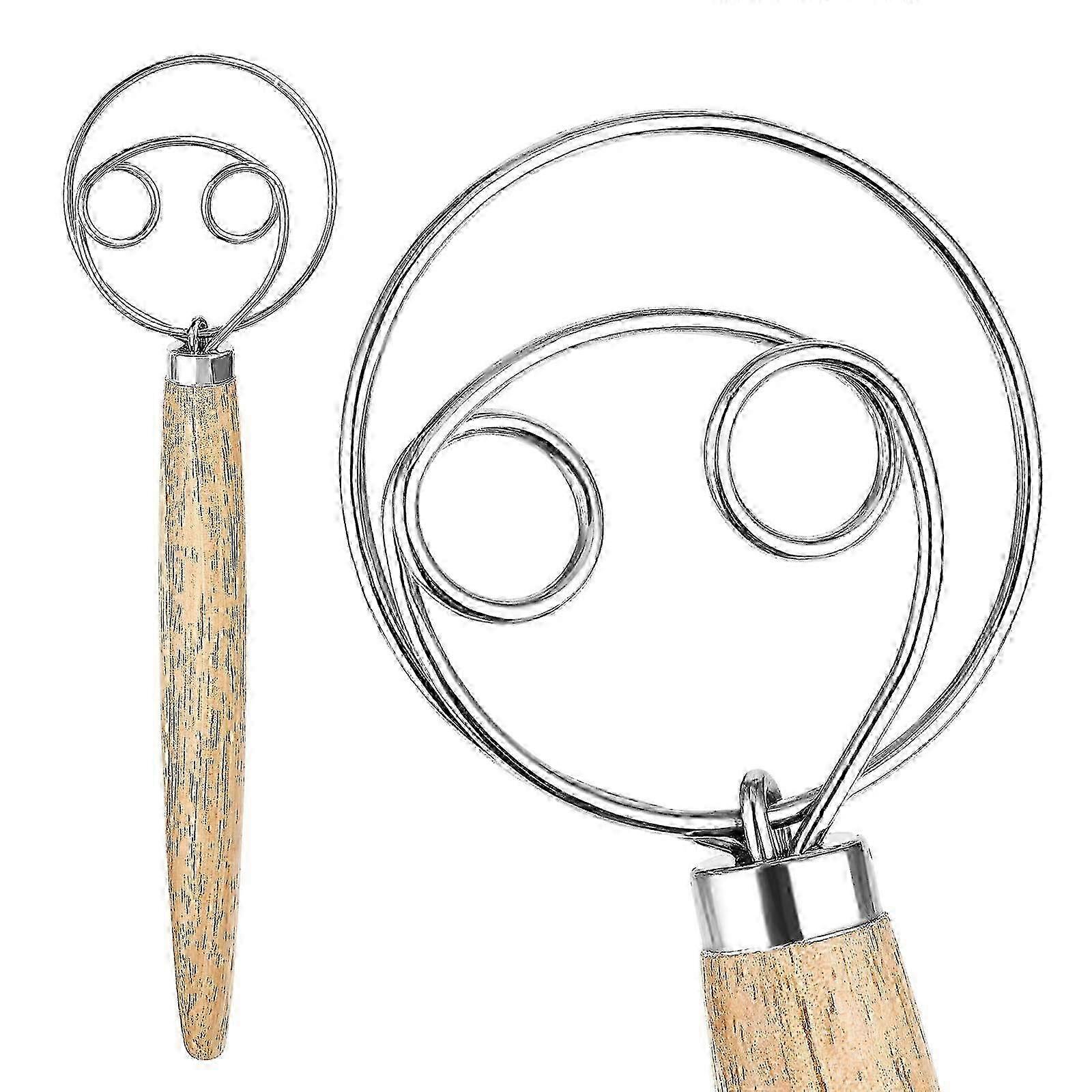13" Danish Dough Whisk - Stainless Steel Hook With Wooden Handle