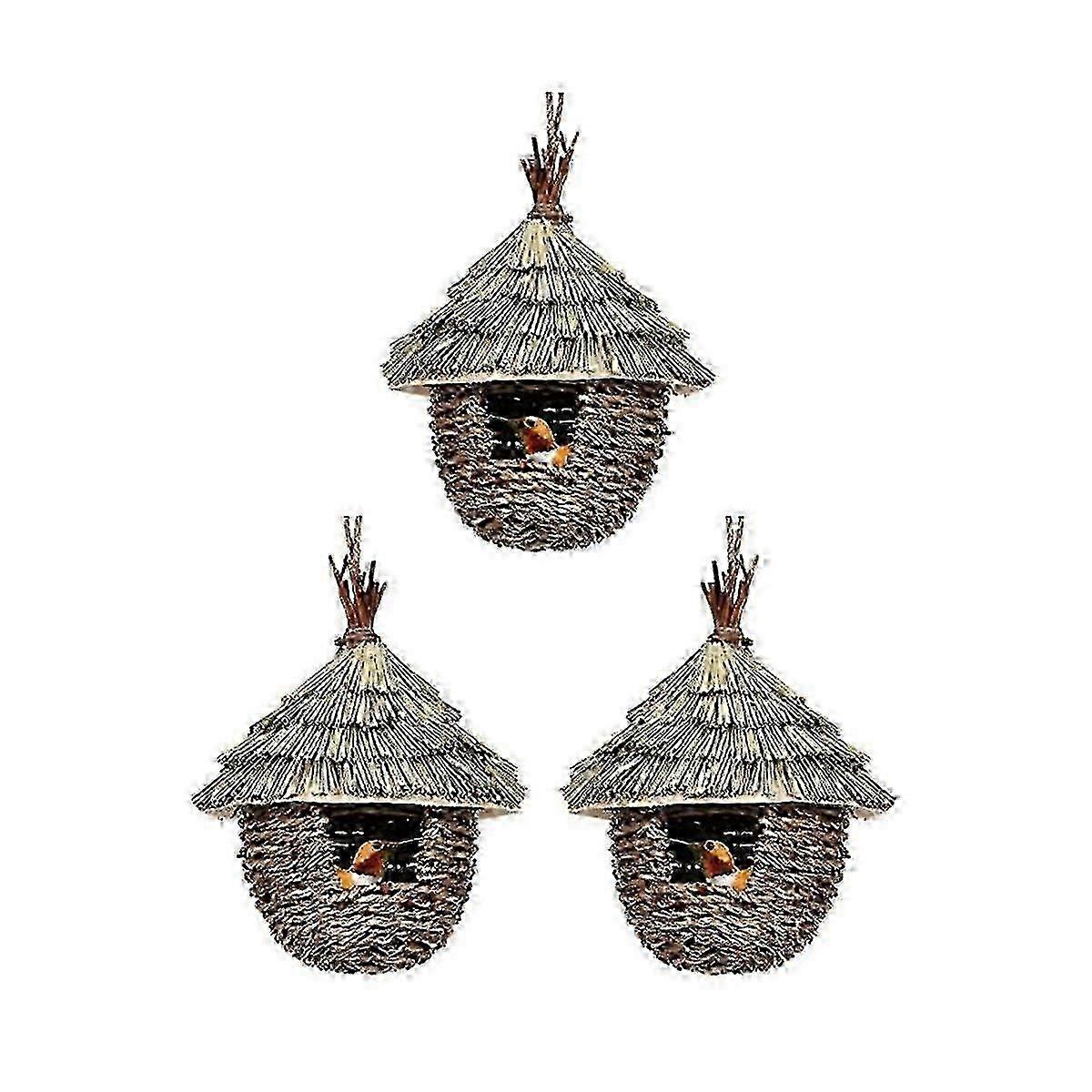 3-Piece Hand-Woven Hanging Hummingbird House Set - Natural Grass Nests for Garden Bird Nesting
