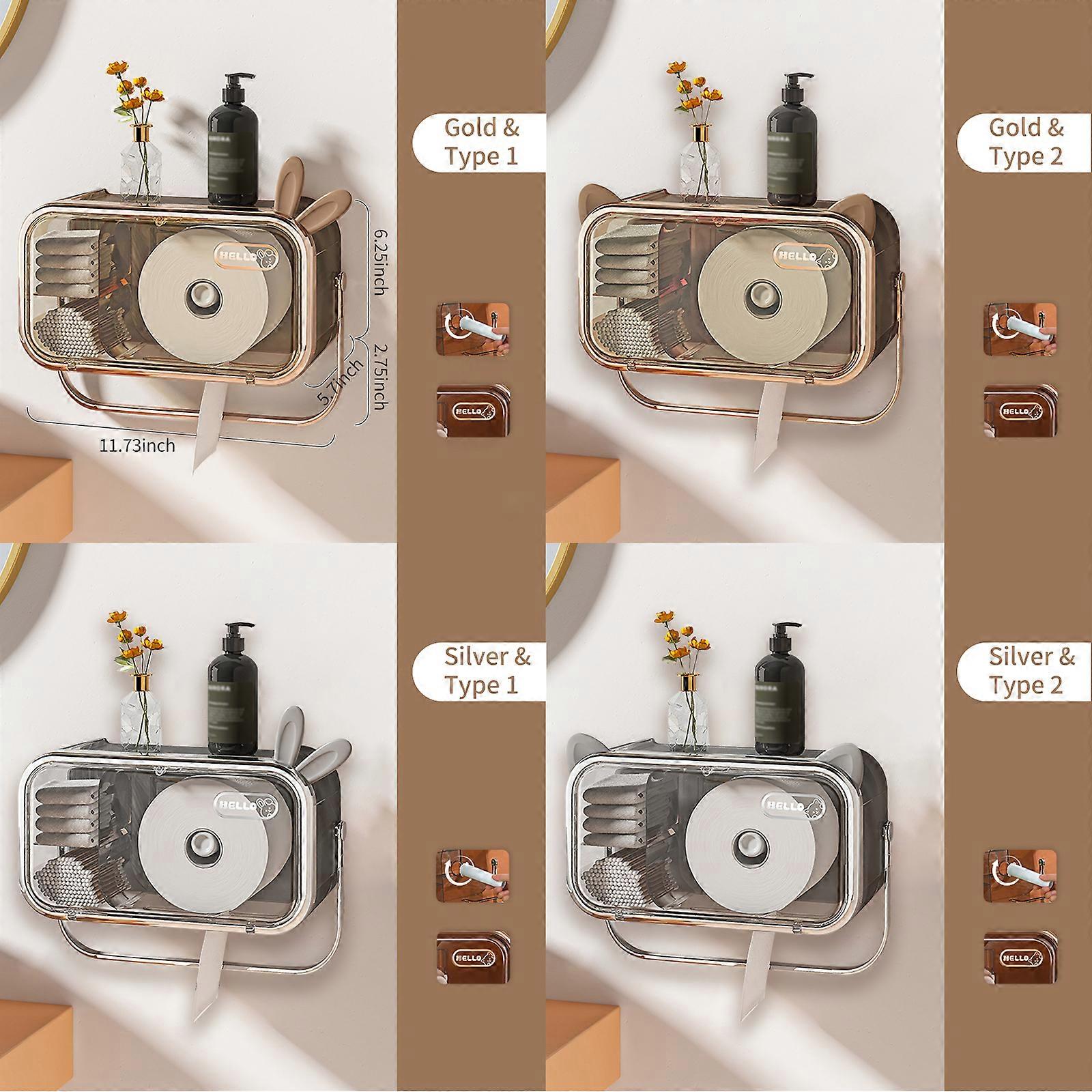 Wall-Mount Paper Towel Dispenser with Shelf, 19.5x17.5x32cm, Gold