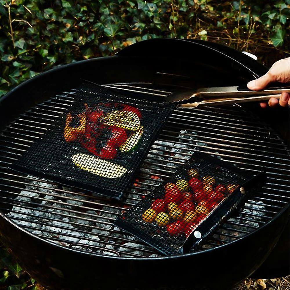 Reusable BBQ Mesh Grill Pouch Non-Stick Barbecue Bag for Charcoal Gas Electric Grills 24 * 14cm/ 9.4 * 5.5inch Features: [Broad Compatibility] A must-have for barbecue, suitable for charcoal, gas, and electric grills. [Large Bags Size] Fits more food for a whole family, the bag has plenty of space for chicken wings, potatoes, vegetables, shrimp, fish, and more. [Easier Seasoning & Flipping] You don't need to season and turn every pieces of food individually, just season your food when it's secured in the bag. [Snap-Closure Buttons] Practical for use, ensuring that small items do not slip out and fall between the grates. [Reusable and Durable] Made from teflon, non-stick and heat-resistant, easy to wash clean with soap and water. Specifications: Color: Black, brown (optional) Material: Teflon Product Size: 24 * 14cm/ 9.4 * 5.5inch Product Weight: 40g/ 1.4oz Note: The utensils and tongs showed in the pictures are not included. Package List: 1 * BBQ Mesh Grill Bag