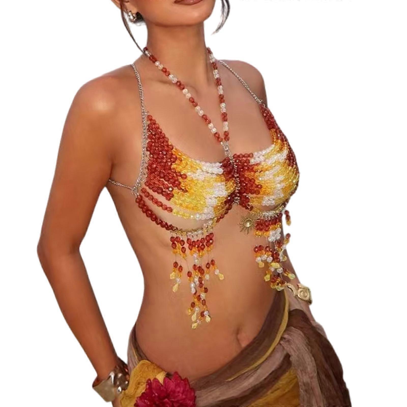 Pearls Layered Body Chain Bra Chest Chain Necklace Raves Party Costumes Body Jewelry Accessories for Women Clubwear color Universal code