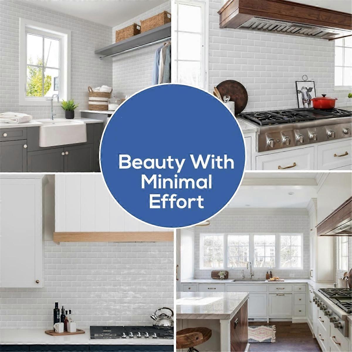 10 Sheets White PET Subway Tile Peel and Stick Backsplash,12''HeatResistant Stick on Tiles for Kitch