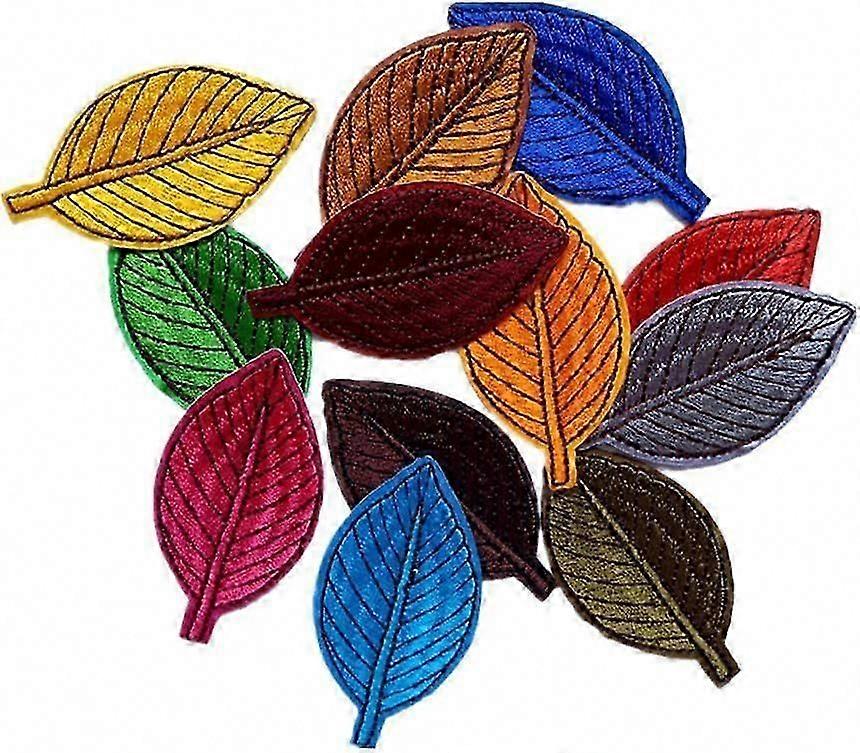 Mingjun 12 Pcs Embroidered Leaf Patches for Clothing, Jackets, Backpacks, T-Shirts, Jeans - Sew On or Iron On DIY Applique