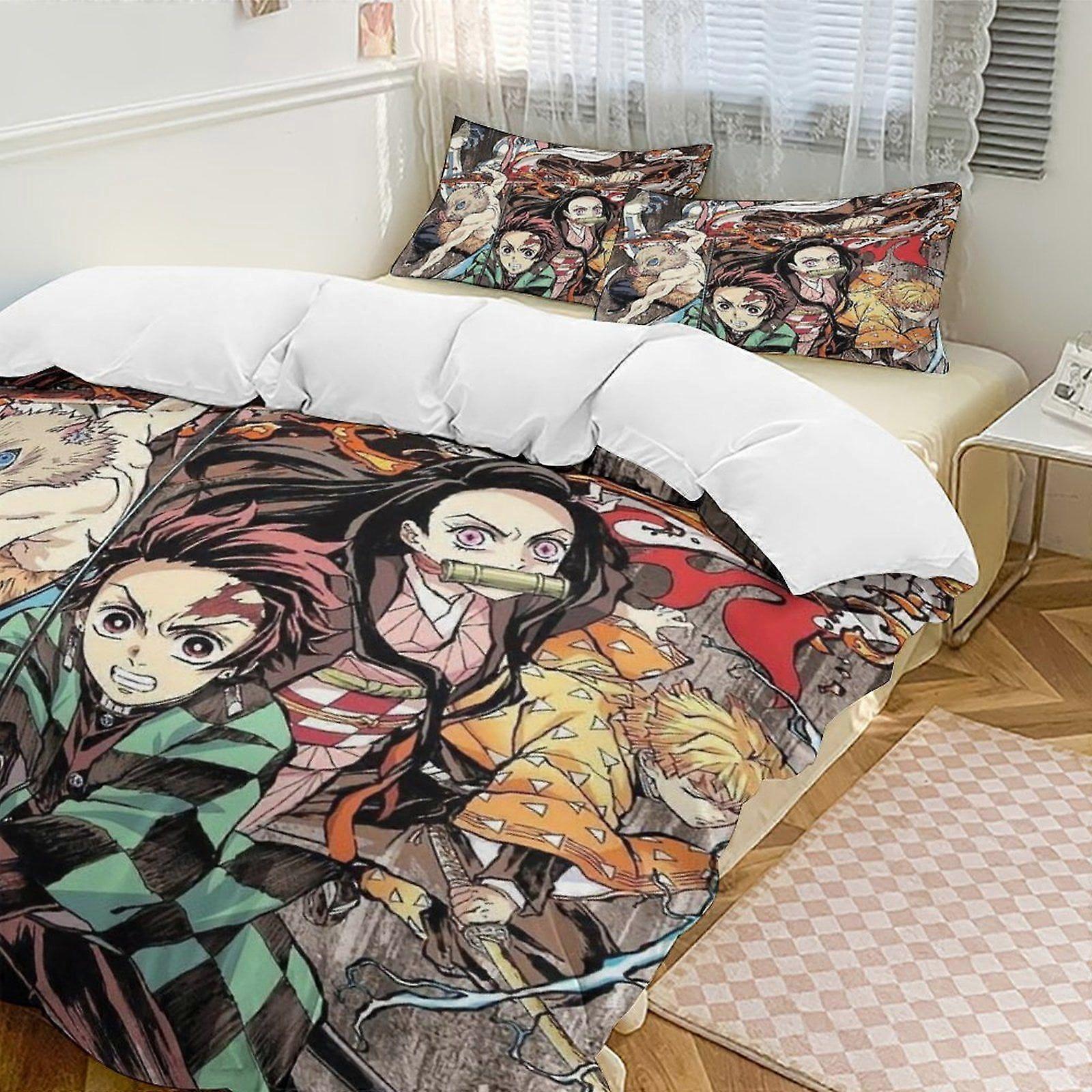 a174 Demon Slayer Anime Home Bed 3-piece Set, Classic Japanese Anime Polyester Wash Student Dormitory Set jfr174