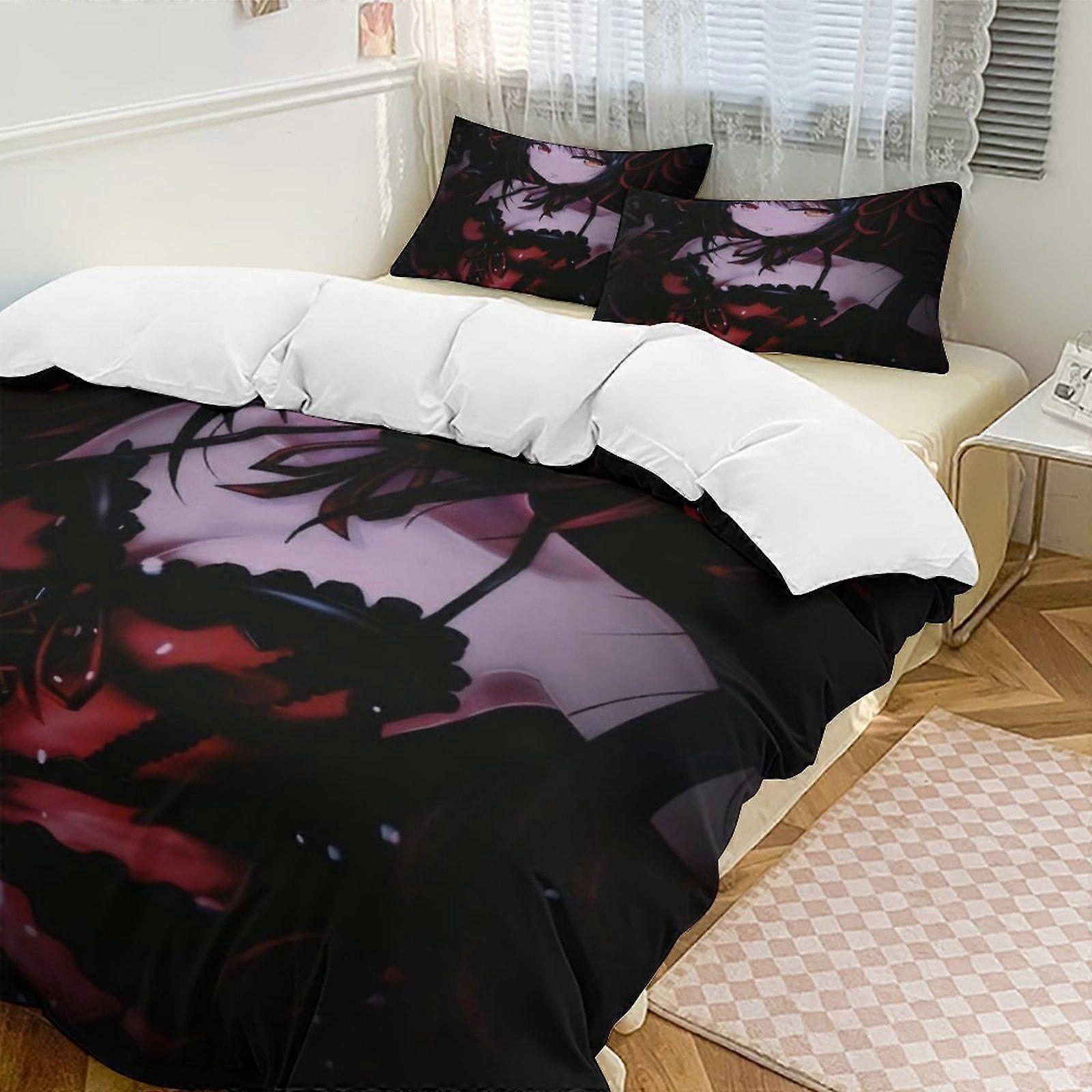 Bed Sheets a742 DATE A LIVE Anime Home Bed 3-piece Set, Classic Japanese Anime Polyester Wash Student Dormitory Set jfr742